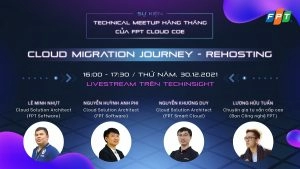 Nằm trong chuỗi meetup định kỳ hằng tháng của nhóm chuyên gia cloud FPT (Cloud CoE FPT), sự kiện có chủ đề “Cloud Migration Journey – Rehosting” sẽ được tổ chức vào 16h ngày 30/12, được livestream trên trang Workplace Tech Insight. Dưới sự dẫn dắt của gương mặt host quen thuộc – anh Lương Hữu Tuấn, chuyên gia Ban Công nghệ Tập đoàn – các khách mời là kiến trúc sư giải pháp đám mây: Lê Minh Nhựt (FPT Software), Nguyễn Huỳnh Anh Phi (FPT Software) và Nguyễn Khương Duy (FPT Smart Cloud) sẽ có những chia sẻ hữu ích.